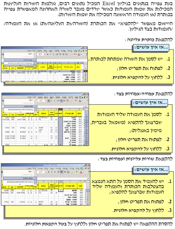 ניווט - הקפאת שורות / עמודות לצפייה בעת גלילה